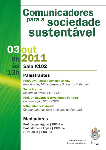Próxima segunda, dia 03 de outubro, das 9 às 13h, estão todos convidados para um bate-papo na PUC-RJ sobre o papel do comunicador para a sociedade sustentável.